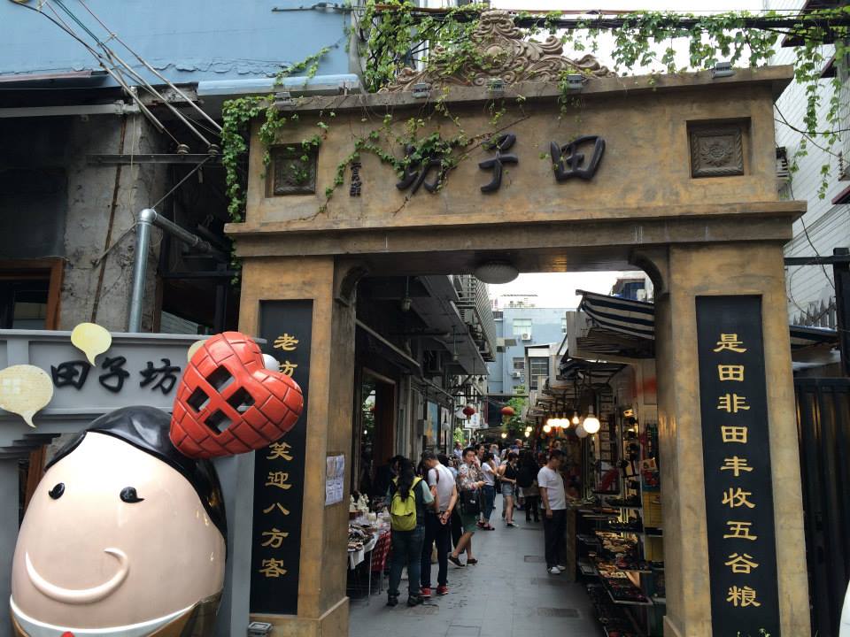 Tian Zi Fang is a district that sells food, arts and crafts, clothes.  It also has a lot of bars here! To get here simply tell the cabbie to go to 泰康路 (Tai Kang Lu), and then say you want to go to the entrace of Tian Zi Fan.  They should know since it’s a pretty popular place.  Once you get there you should be able to see the above entrance (TIP, don’t worry if you didn’t bring enough cash, there is a HSBC just across the street!).