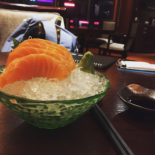 Haven’t had japanese food in awhile..so I was looking forward to the meal.  Order a set of salmon sashimi, because I can.  It was cold, fat and delicious.  I need to go on a salmon binge soon.  Probably when I go to back to Hong Kong.  There were about 5 pieces.  I usually can eat about 15.  Oh well, it’s not an all you can eat place.