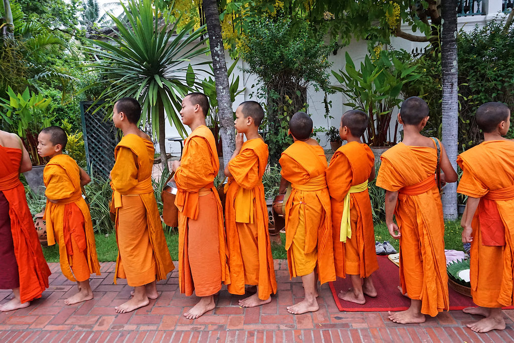Is an old tradition performed between the monks and the local people. Every sunrise the monks walk through the town, receiving food or “alms” from the local people.