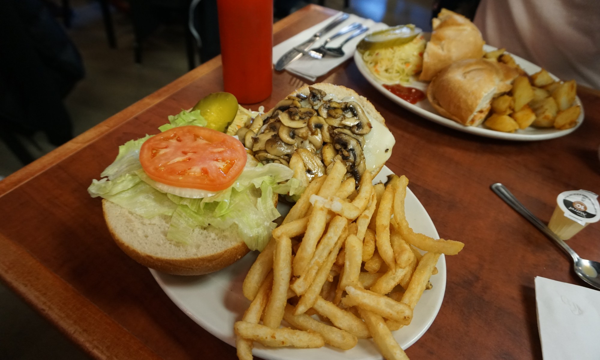 I ordered the swiss mushroom burger while Life boss got the breakfast on a bun. Breakfast on a bun.