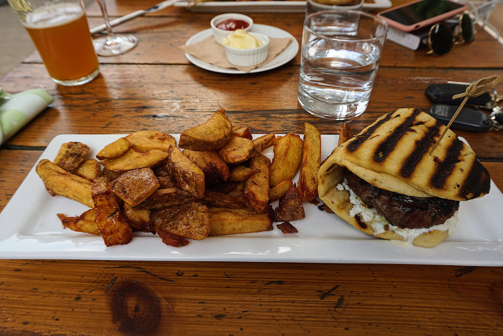 - I got the burger wrapped in some weird bun. It was not that good. The patty was rough and not as juicy. Sigh. I will never be able to get a good burger in Toronto. At least the beer was good…