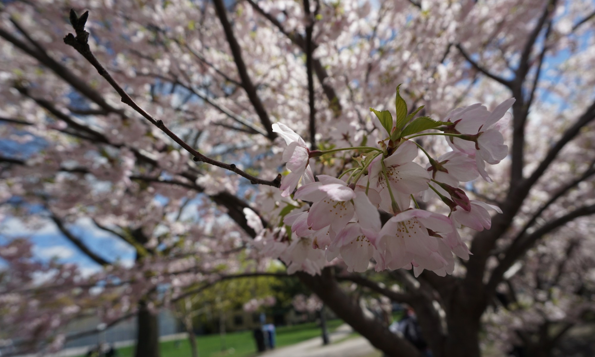 I said okay because I didn’t want to get my ass kicked. But I seriously don’t understand what the big deal is with Cherry Blossoms. It’s just leaves. Pink leaves. That apparently lasts for like a week or something before they die. Are they pretty? Yes I guess so. Is it worth flying to Japan and spend 5K plus to see? I don’t know about that. Maybe if I was making a million bucks a day. Luckily for me, there are Cherry Blossoms in Toronto, so I said okay let’s go to Trinity Bell then!