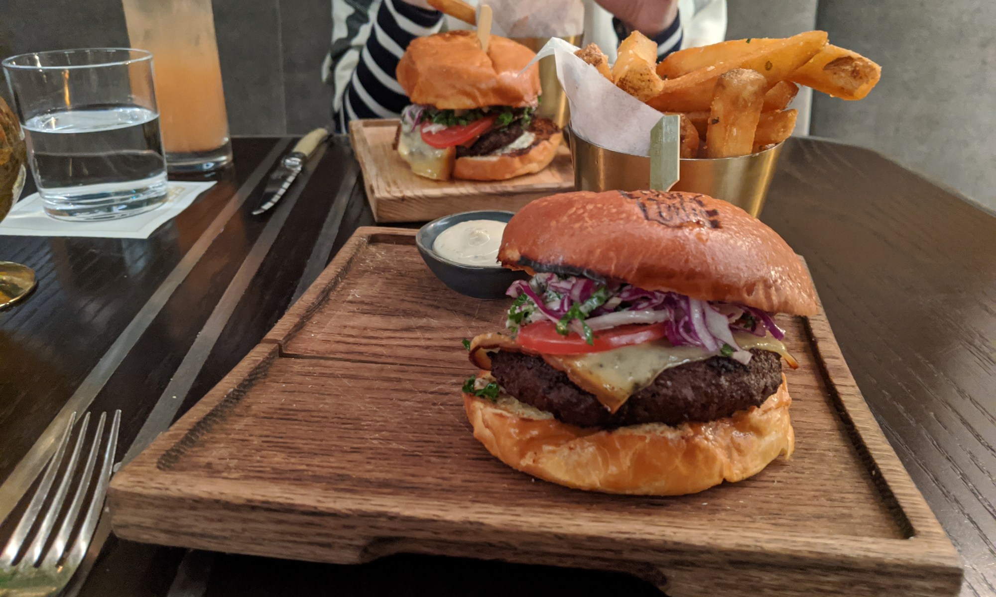 Another angle of the burgers